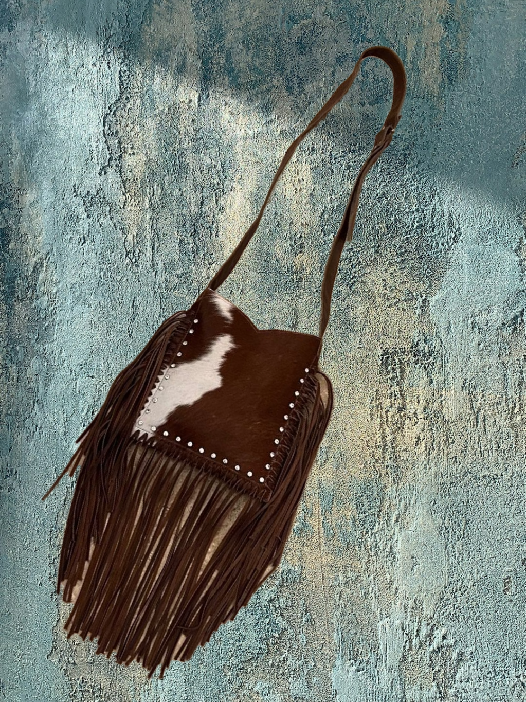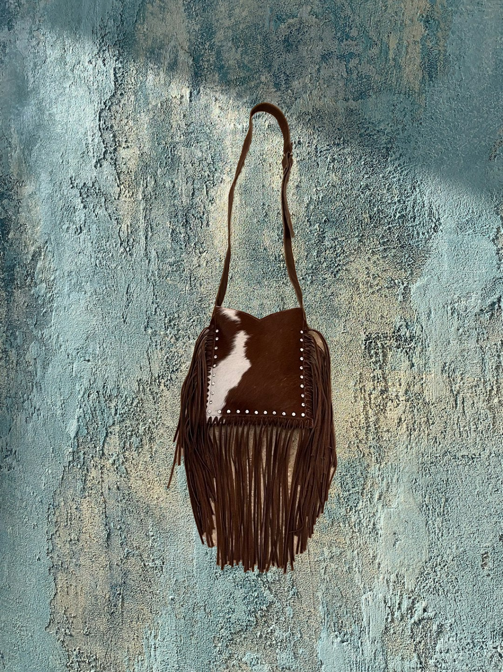 Beautiful all leather cross-body fringe style genuine leather handbag. Proudly made by Raviani Handbags and Accessories. This handbag is embellished with leather fringe. The fringe is double sided and about 9 inches long. The interior is lined and has a zipper pocket with two open pockets in the front and back of the zipper pocket. The handbag has a magnetic closure.