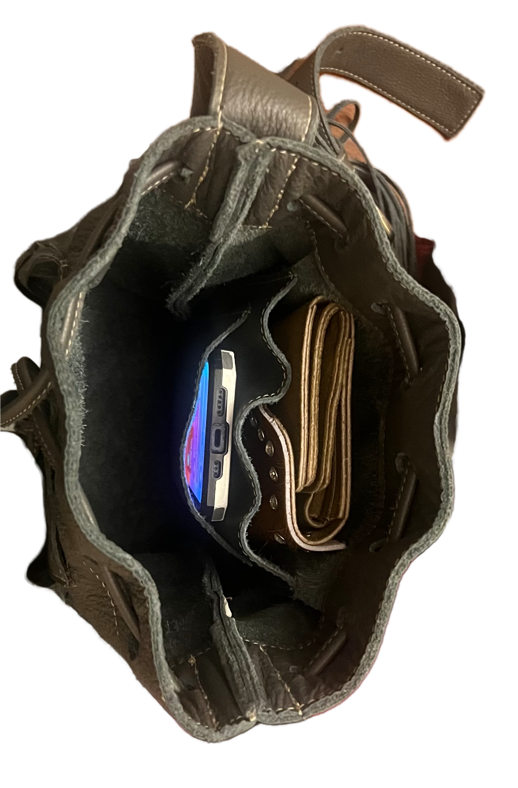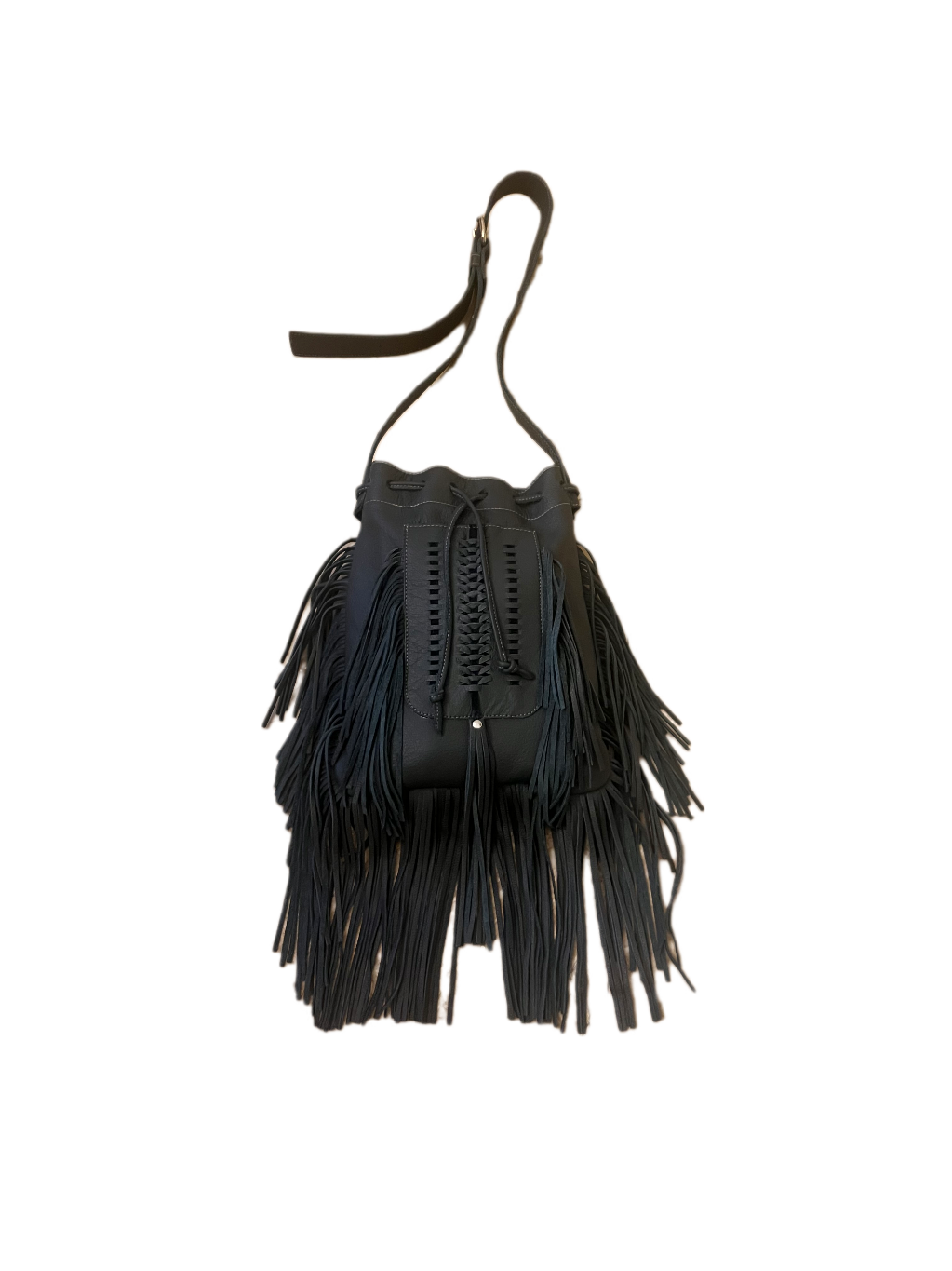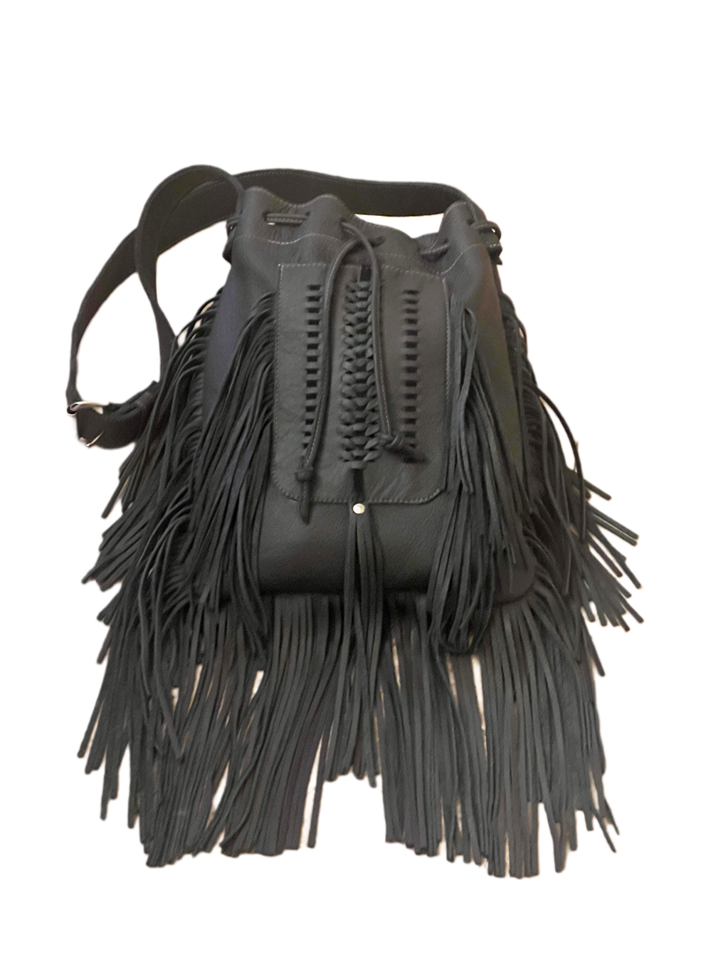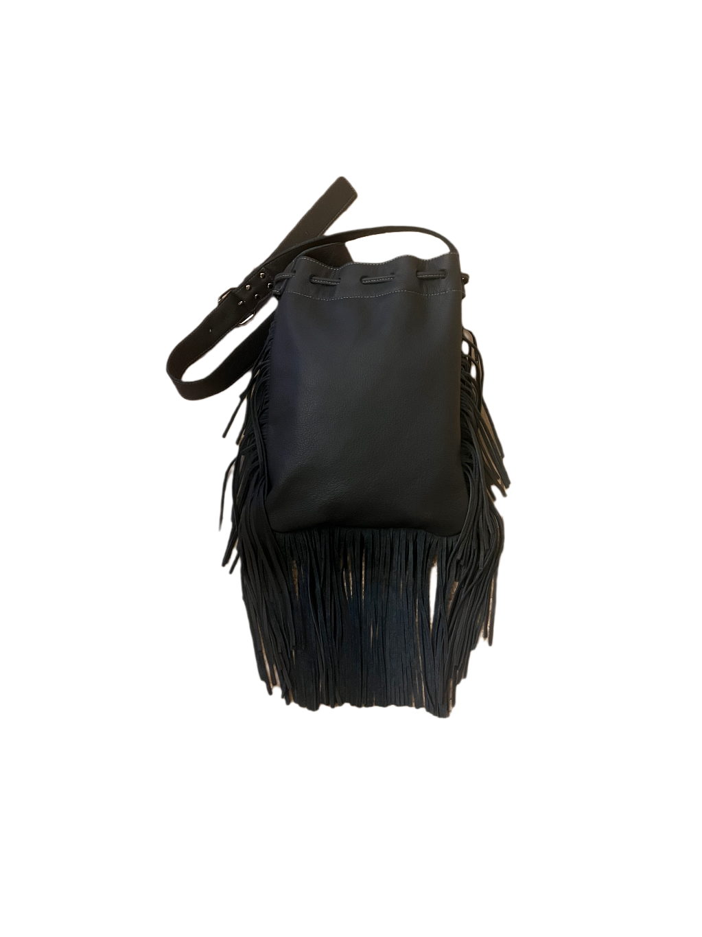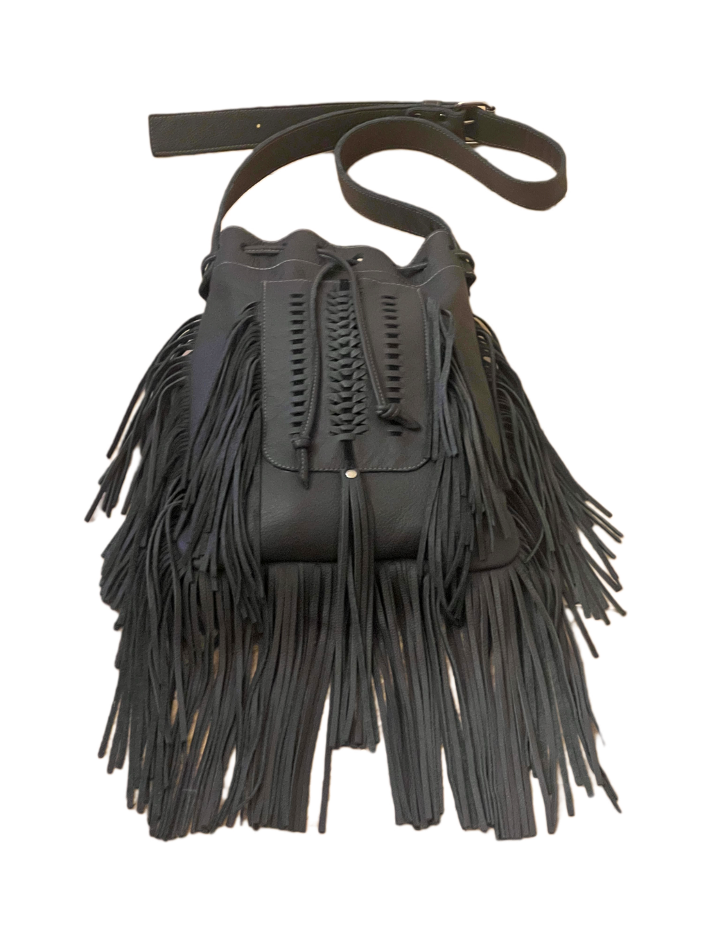 Here is brand new beautiful all leather western fringe crossbody bag in top grade pebble grain charcoal color leather with adjustable shoulder strap.